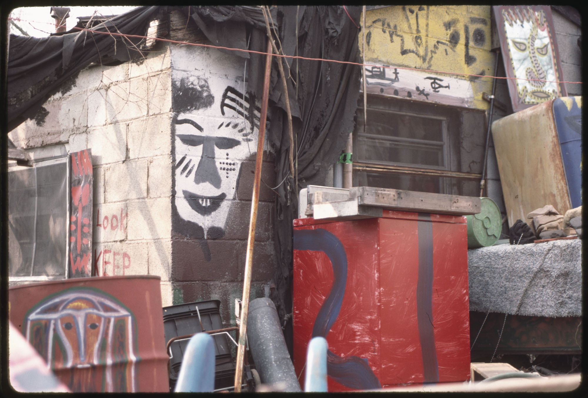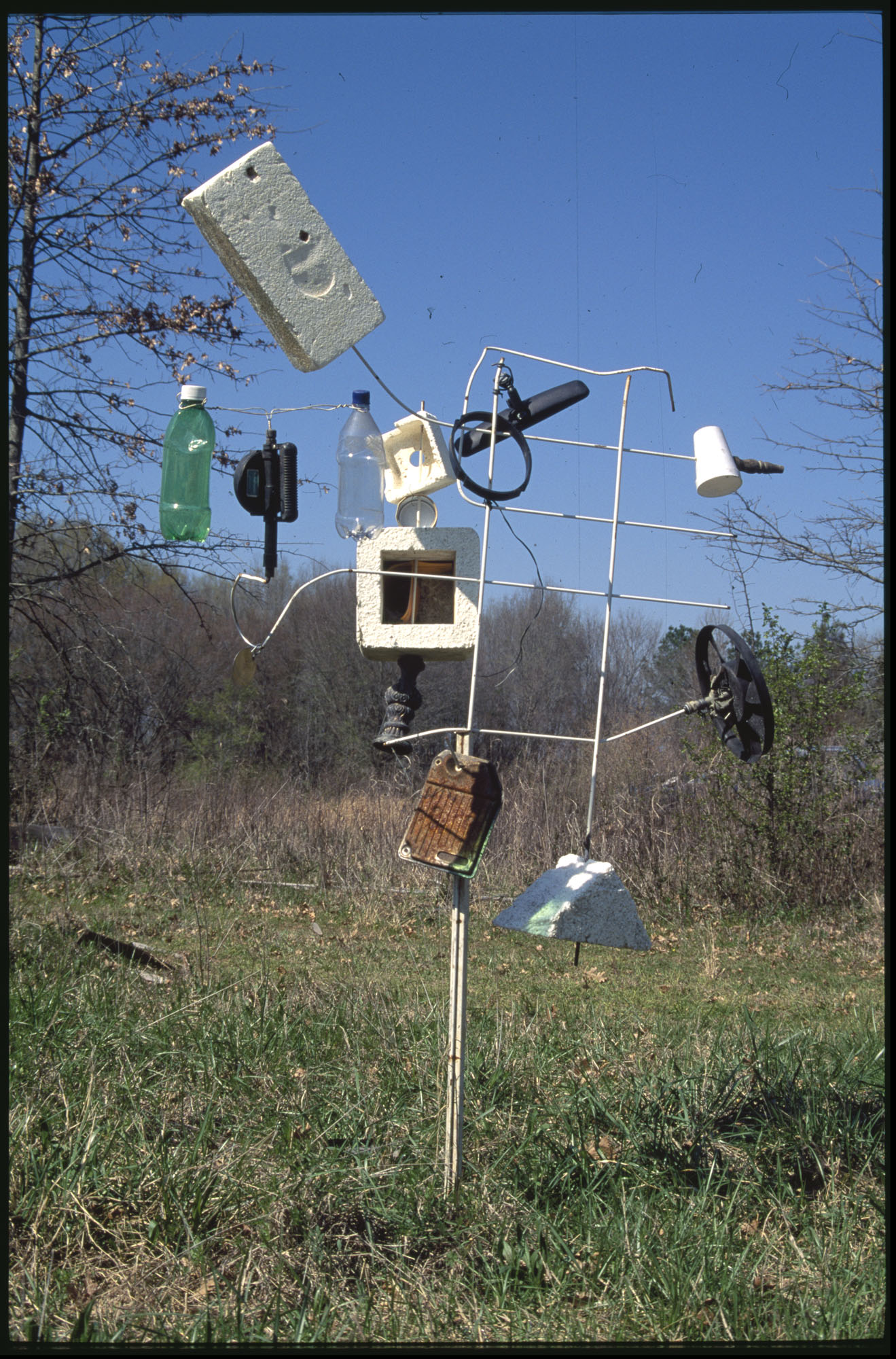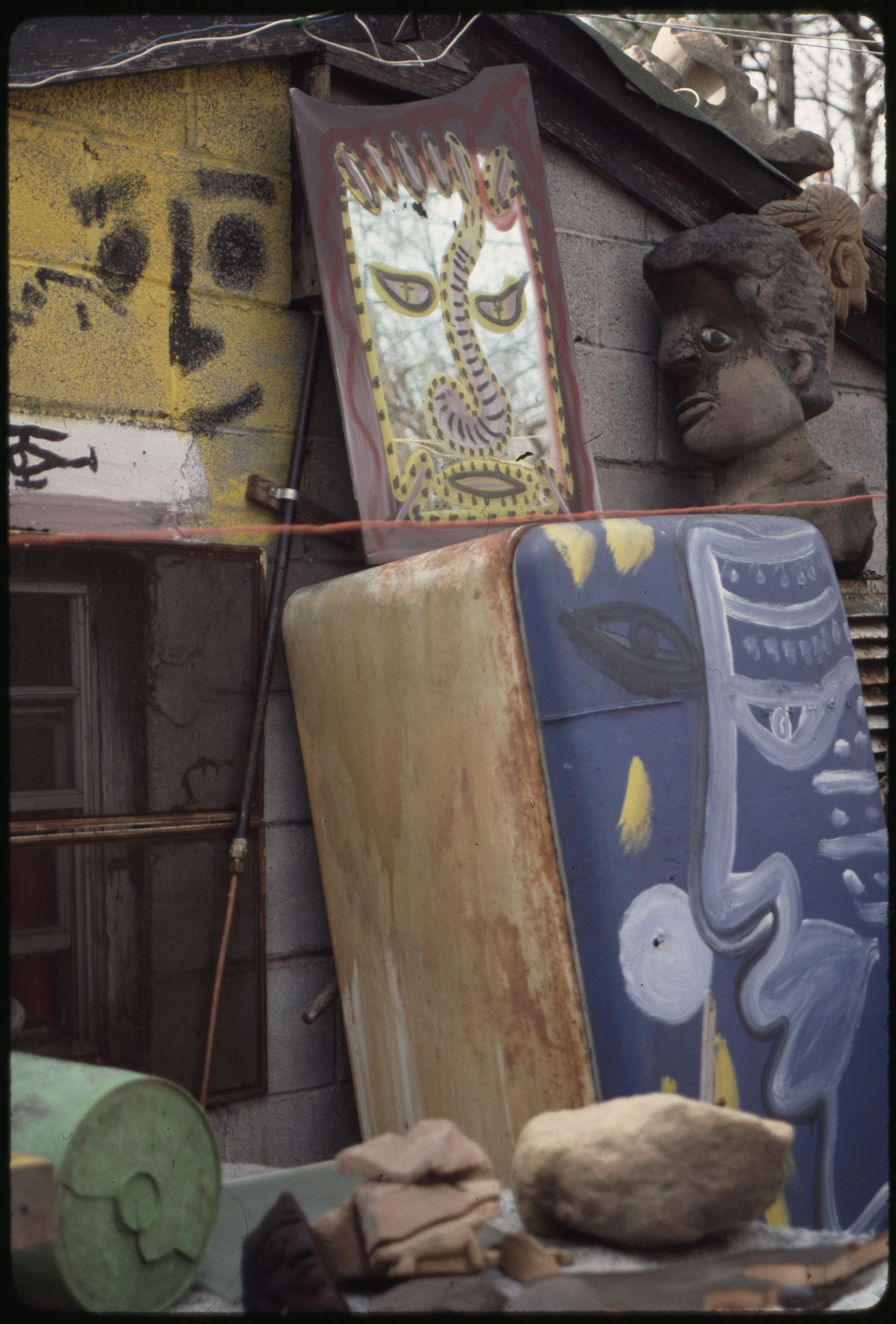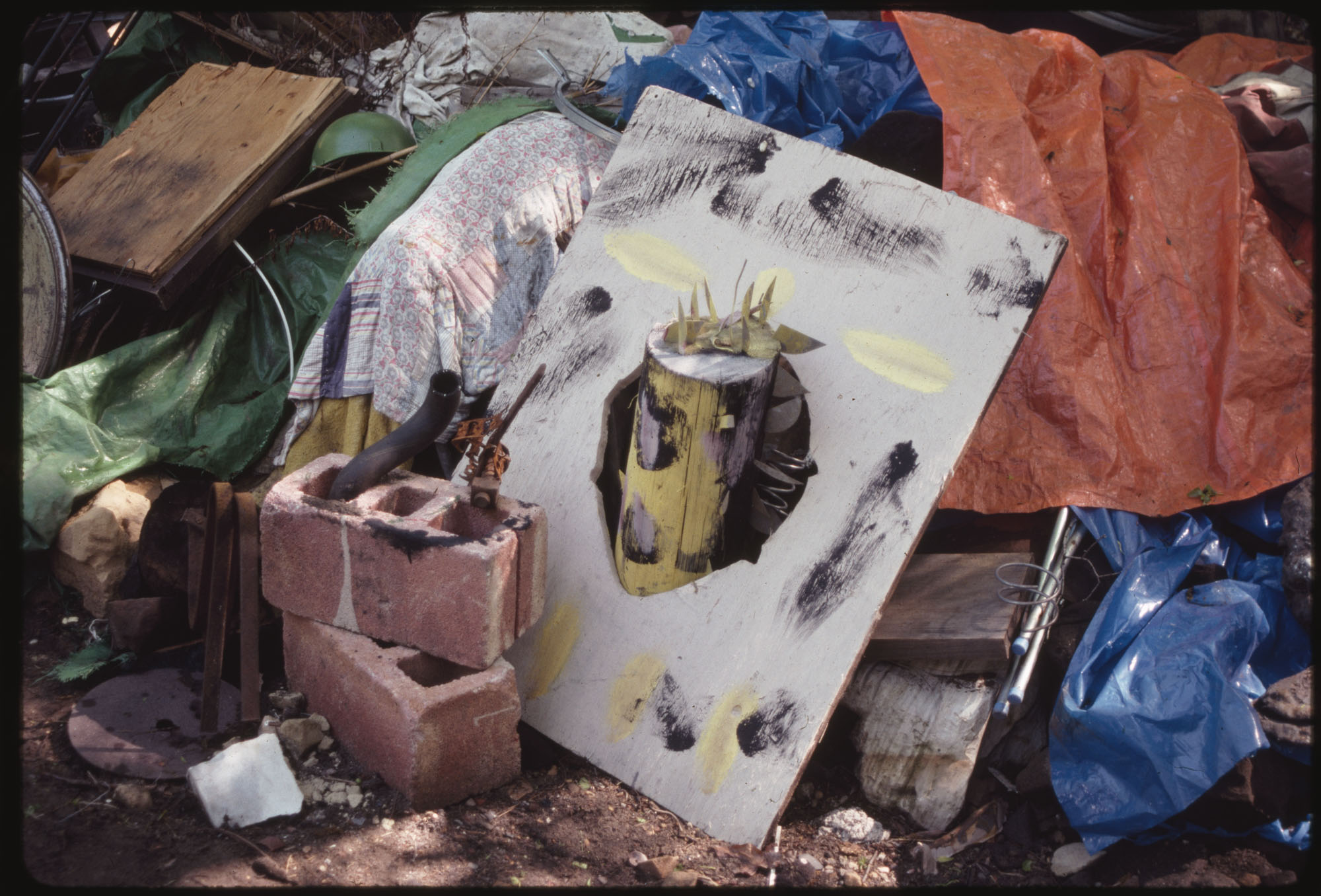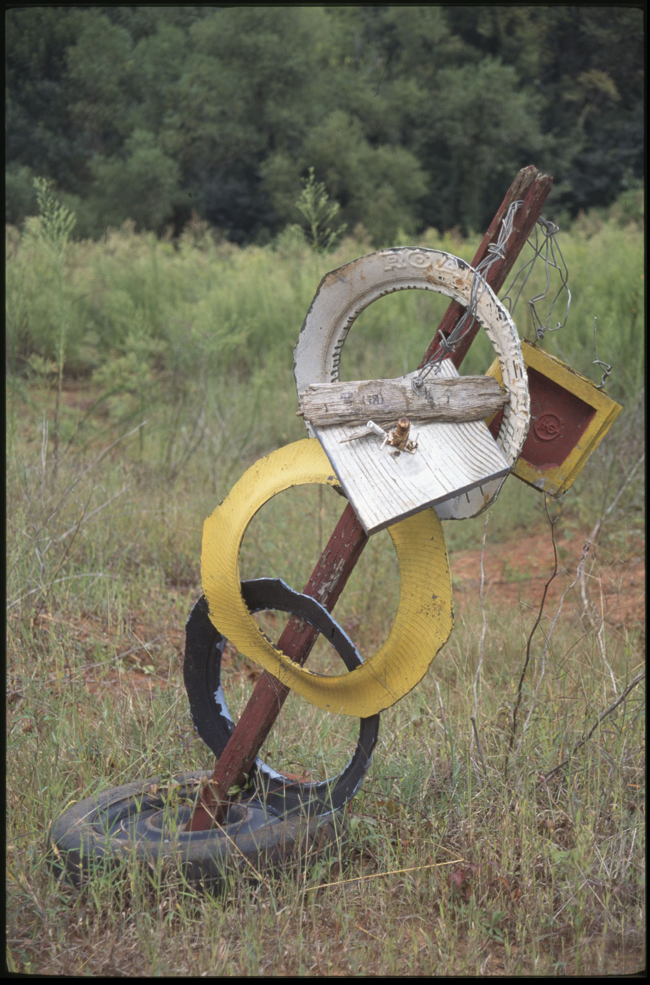 When Lonnie Holley started making art 1n 1978, he did not conceive an art environment or a yard show as such displays are often described. But over the years his prolific art output began to find a form. Over 2-acres of woodland adjoining the Birmingham Airport, Holley began arranging and re-arranging his works. He would travel looking for materials to create his works—alongside creeks, down railway lines. And selectively, he would bring these materials back to his yard. Soon, it became impossible to distinguish between art and the materials it was created from. The Environment, as it became known, was a sprawling adventure of color, texture, materials, household items, clothing, and art objects. As he says in the film—he was one of the first re-cyclers. Here are some photographs of the ever-changing Environment that would eventually be destroyed in 1997 to make way for an airport expansion that never occurred.